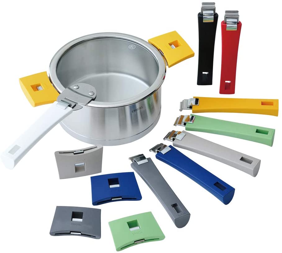 Les anses Cristel Mutine blanches sont associées aux ustensiles de cuisson Cristel Mutine, mais s’adaptent également à toutes les casseroles, poêles, et couvercles des différentes collections amovibles Cristel.