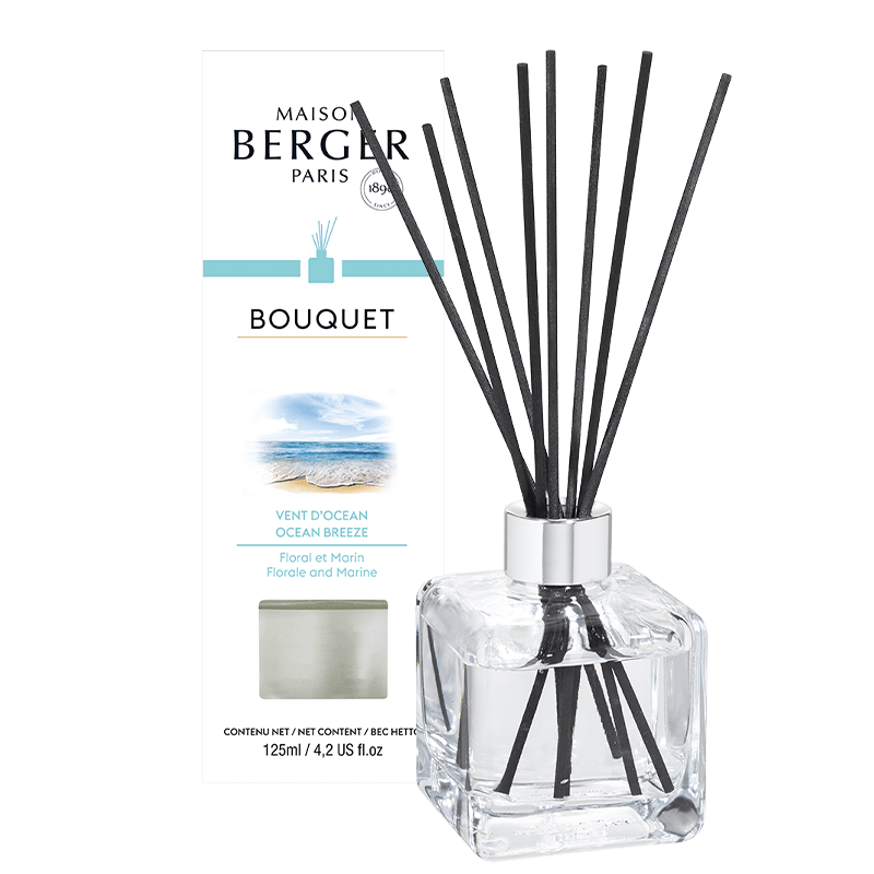 Le bouquet Parfumé Cube Berger Rêves de Fraicheur “Vent d’Océan” habille chacune de vos pièces d’un léger voile parfumé avec originalité et élégance.