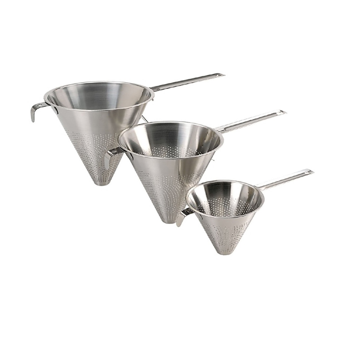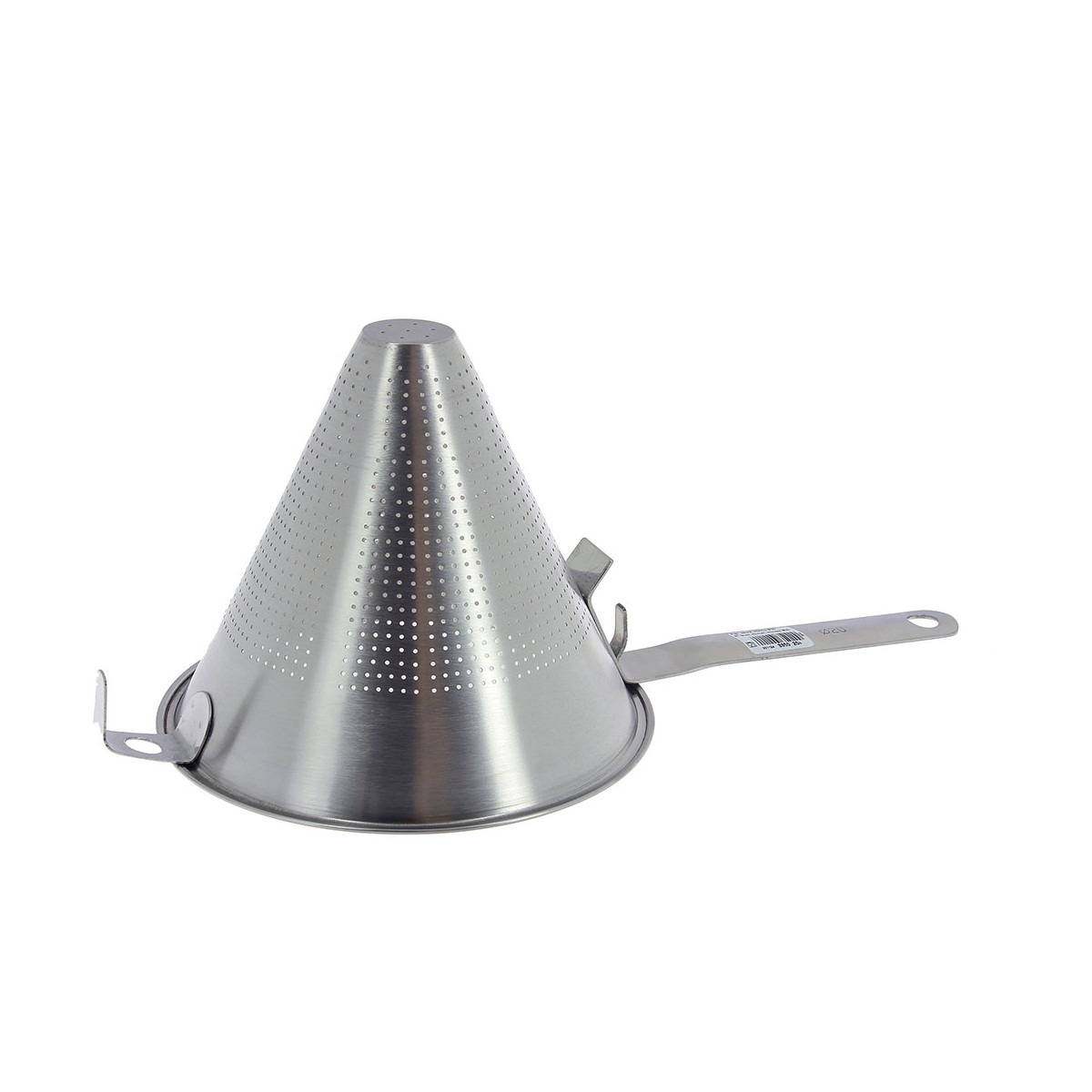 Résistant et durable, il sera idéal pour une utilisation intensive. Il dispose d’une queue inox soudée, incurvée et impliable, qui vous permettra une préhension ergonomiue et facilitera le rangement de l’ustensile grâce à un trou d’accrochage. Ses 2 crochets soudés à l’entonnoir vous permettront de placer le chinois dans un récipient sans renverser la préparation et vous permettront d’avoir les mains libres.
