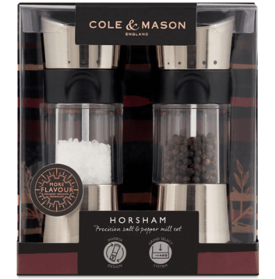 Ces moulins à sel et à poivre font partie de la série Horsham de Cole & Mason.
