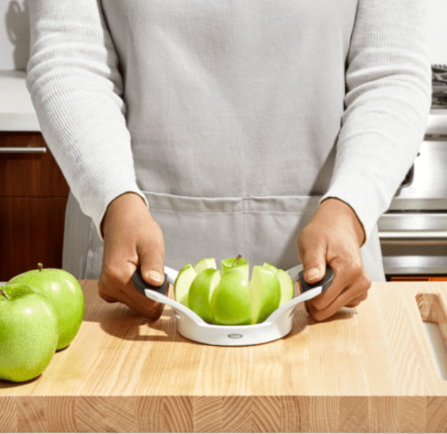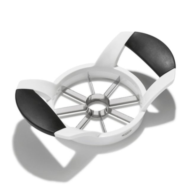 8 quartiers nets en un geste : coupe facile, trognon retiré, poignées confort pour plus de force.