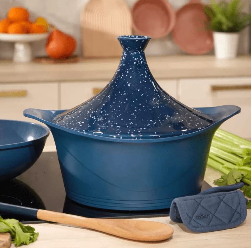 Par sa forme, le couvercle tajine amplifie la condensation des vapeurs pour une cuisson douce et homogène des viandes.