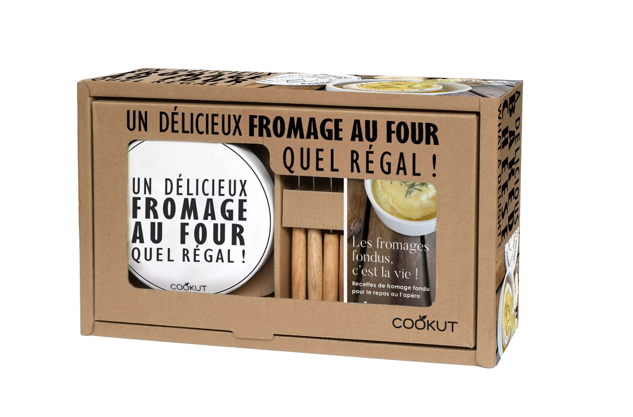Coffret contenant : – Un cuiseur en acier émaillé – 4 fourchettes – Un livre de recettes