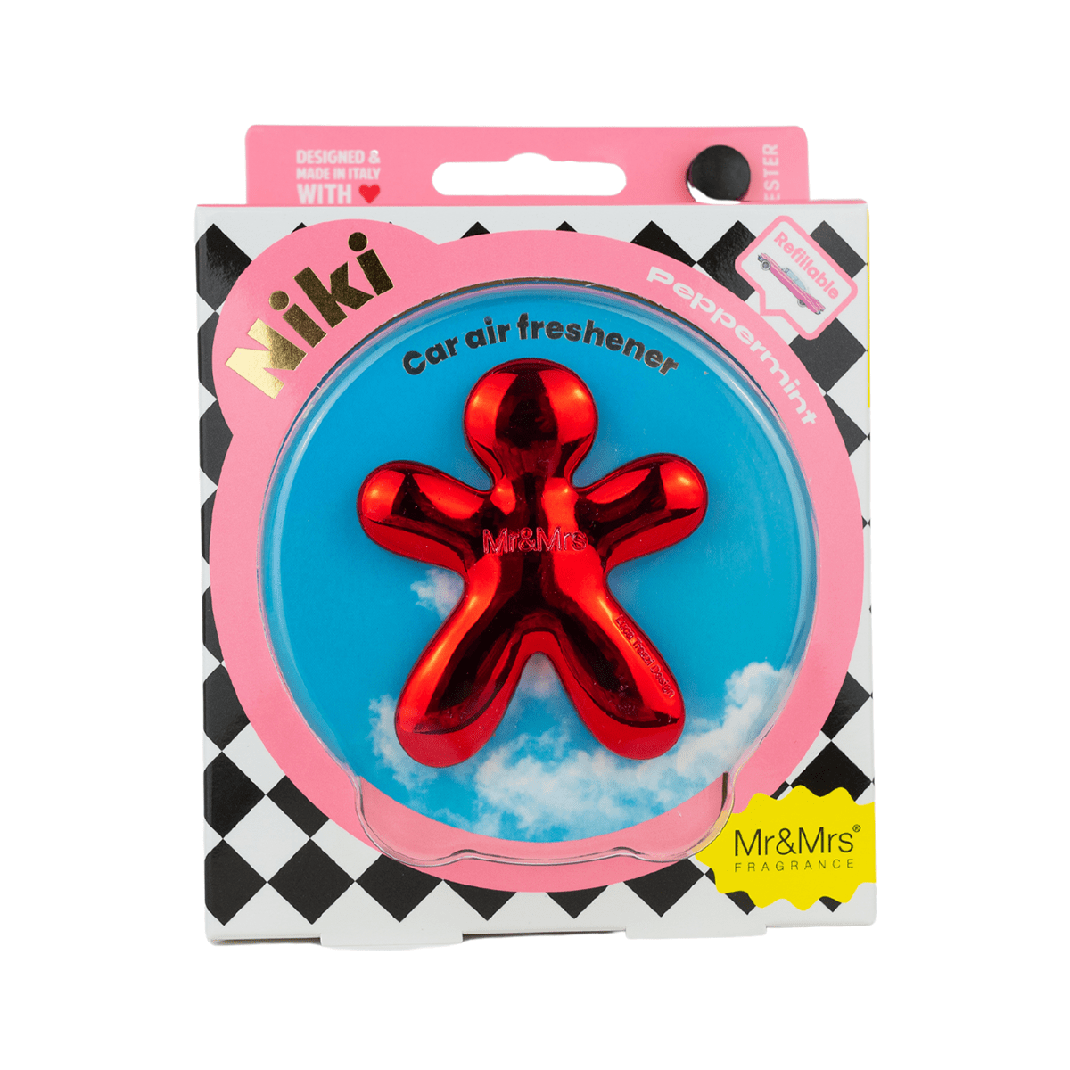 Disponible en plusieurs coloris et plusieurs senteurs, ce “petit bonhomme” Niki Peppermint trouvera facilement sa place dans l’habitacle grâce à sa pince universelle.