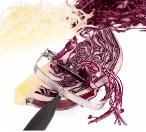 Éplucheur japonais de qualité supérieure pour couper efficacement des tranches de fromage à pâte molle,de chou et doignon jaune.