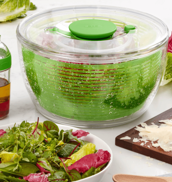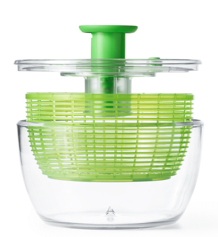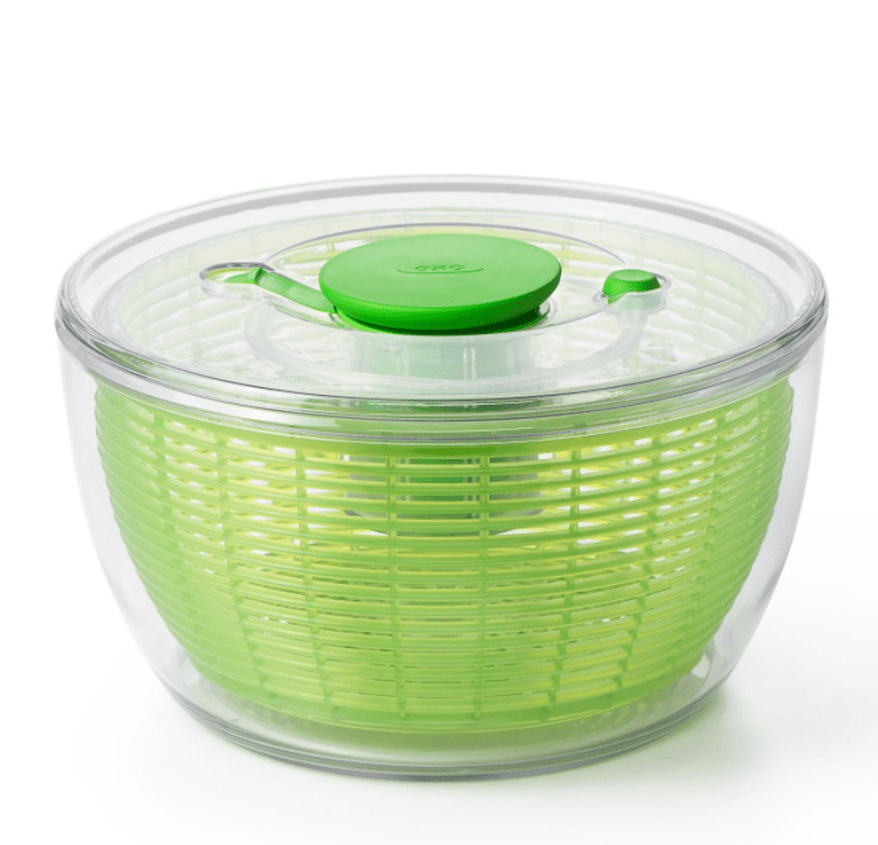 Fatigué de tirer sur le cordon de votre essoreuse à salade ? Ou de tourner sa manivelle en espérant retirer l’eau des feuilles ? Alors l’essoreuse OXO est faite pour vous : il vous suffit d’appuyer sur le mécanisme à piston et votre salade sera prête à être consommée !