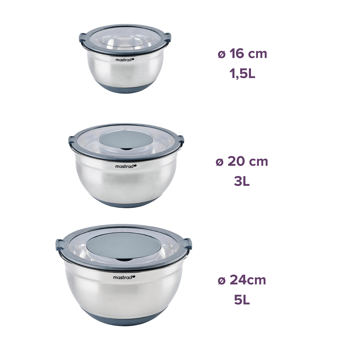 Ce set de 3 bols gradués Mastrad sera idéal pour vos préparations ou s’utiliseront également comme bols.