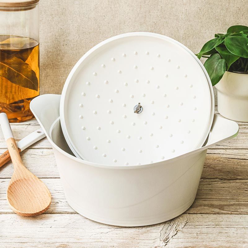 La cocotte 24cm blanche de chez Cookut vous séduira par son design et par son poids, 4 fois plus légèr qu’une cocotte traditionnelle (2.3kg).