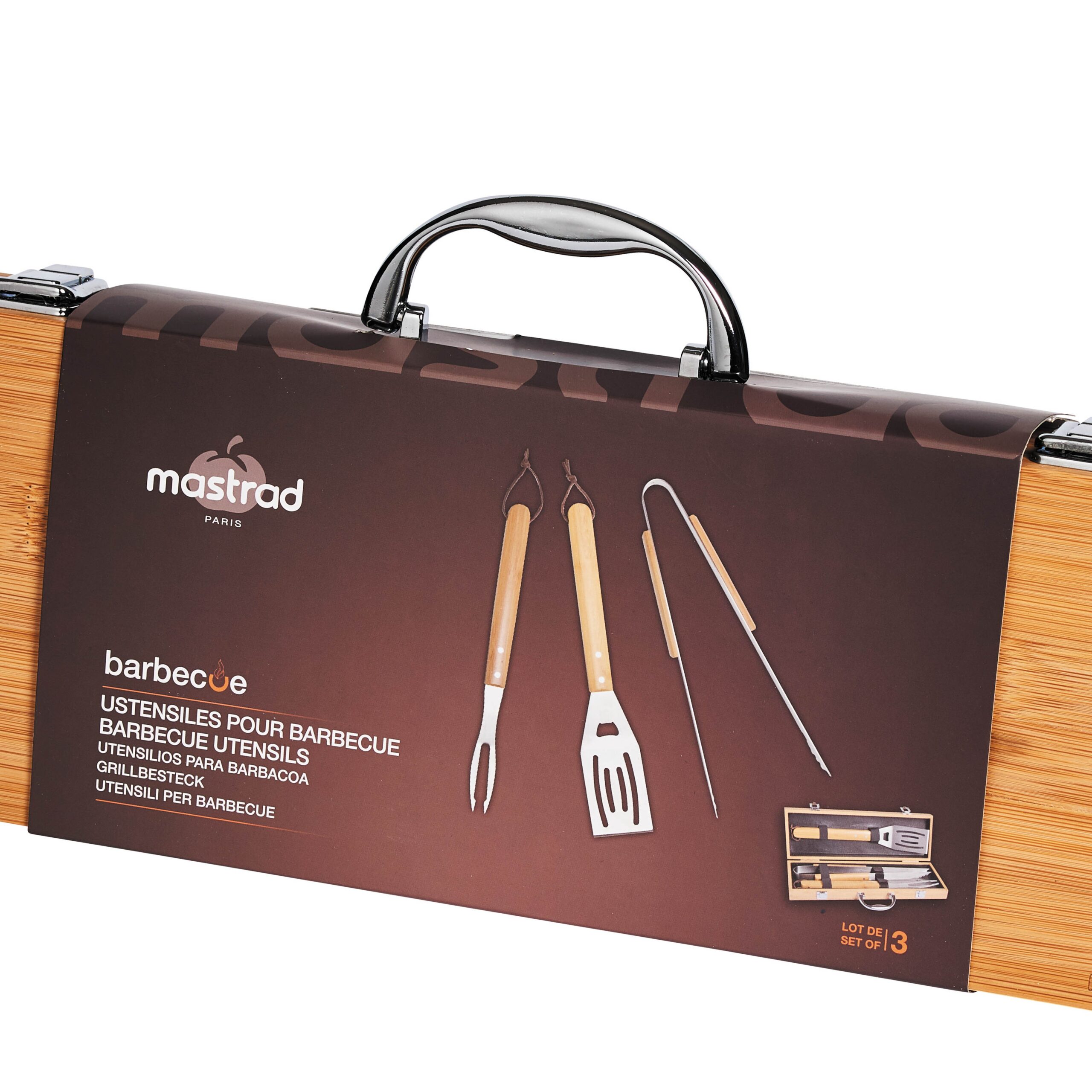 Cette mallette à barbecue Mastrad est composée d’une spatule, d’une pince, d’une fourchette et d’une spatule plancha.