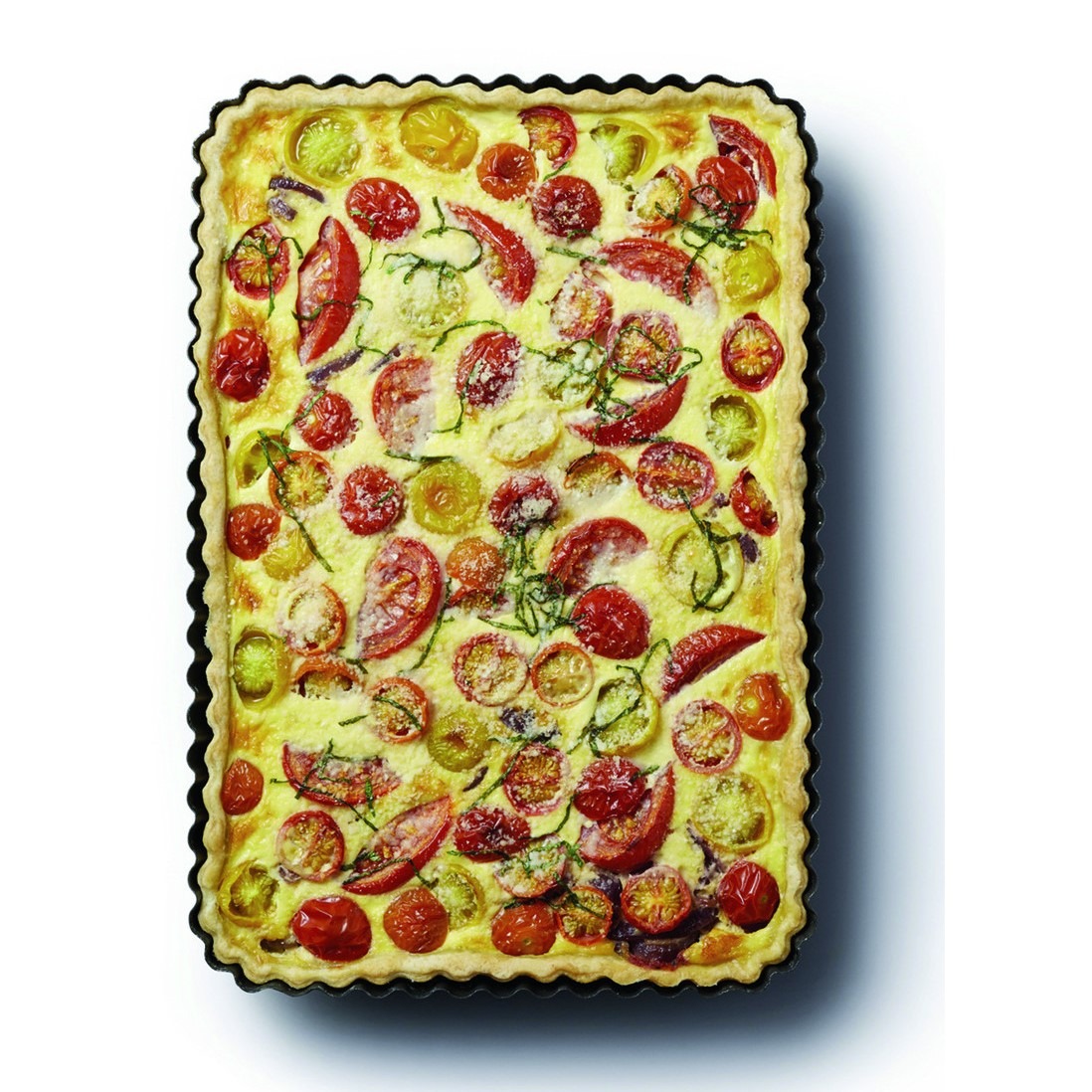 Avec un revêtement anti-adhésif, le moule à tarte dentelé rectangulaire 31cm x 21cm Master Class sera idéal pour la cuisson de vos quiches, tartes sucrées ou salées, et tourtes.