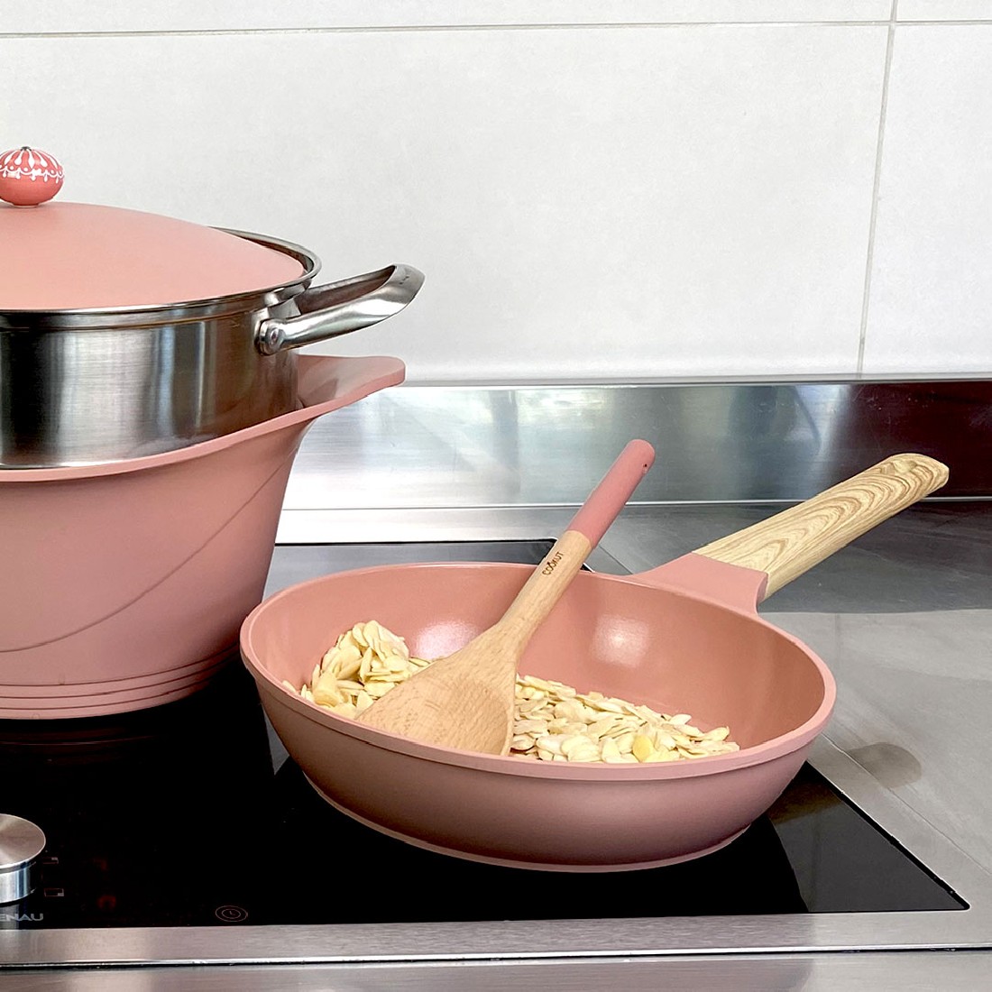 Poêle anti-adhérente rose 24cm Cookut avec un revêtement minéral sans PTFE/PFOA