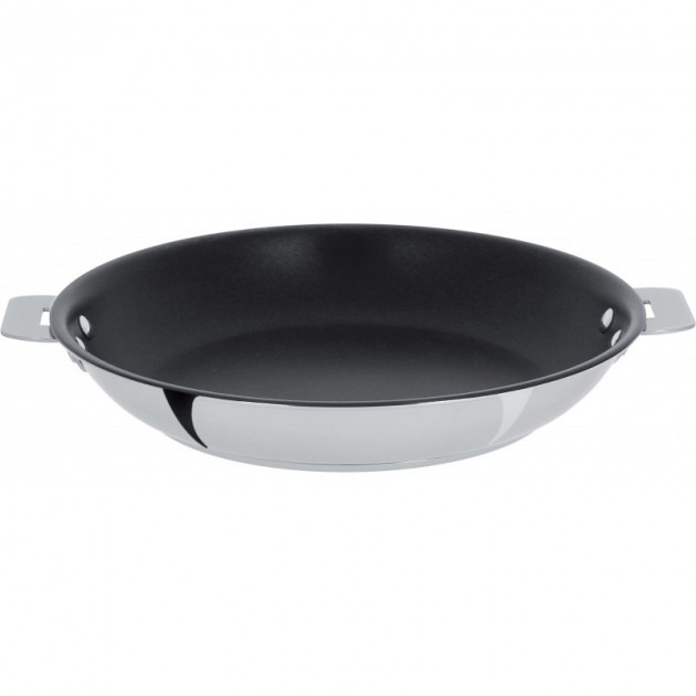 Grâce à 3 couches superposées inox 18/10, aluminium et inox, la poêle Cristel Casteline anti-adhérent Exceliss 32 est idéale pour une diffusion intégrale de la chaleur dans tout le corps de l’ustensile de cuisson. Finition brillante