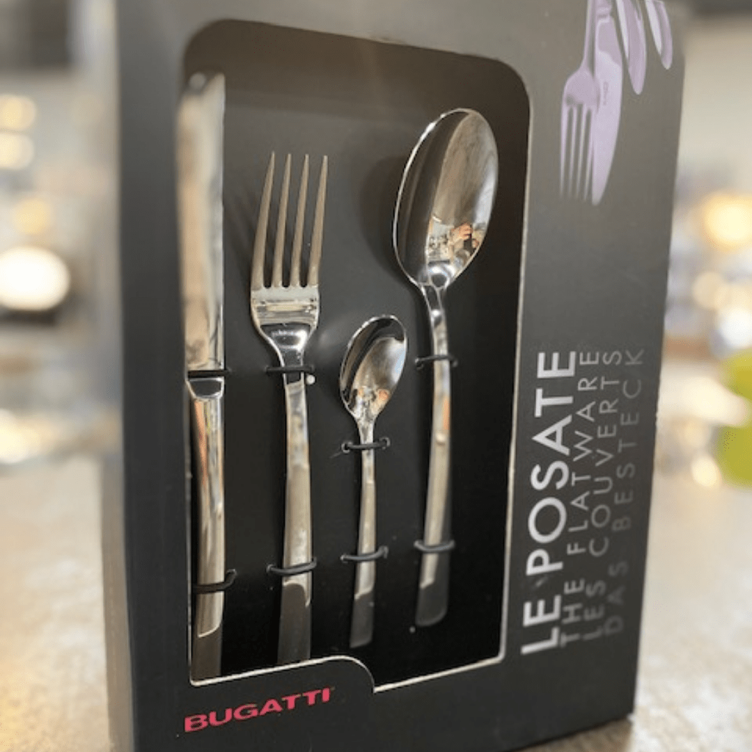 Box de 6 cuillères de table, 6 fourchettes, 6 couteaux et 6 cuillères à café Tendence Bugatti