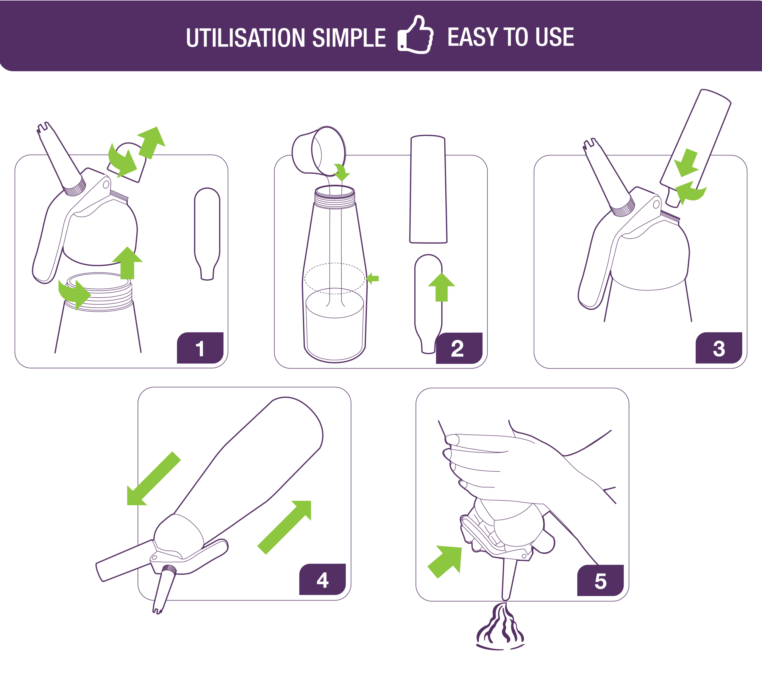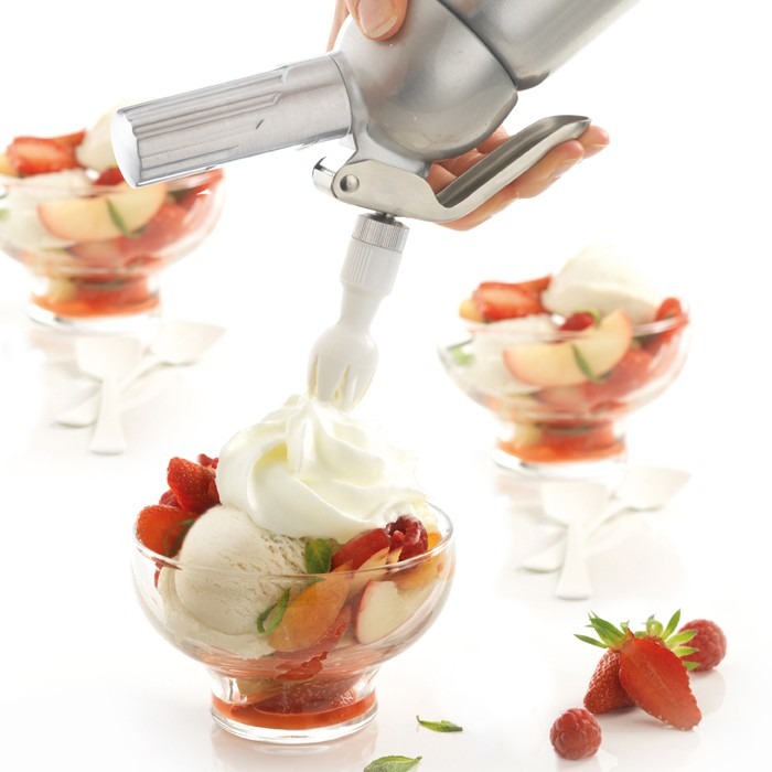 Le siphon Mastrad sera idéal pour concevoir des préparations chaudes et froides (mousses et fruits et légumes, de poissons, sauces, crèmes et chantilly).