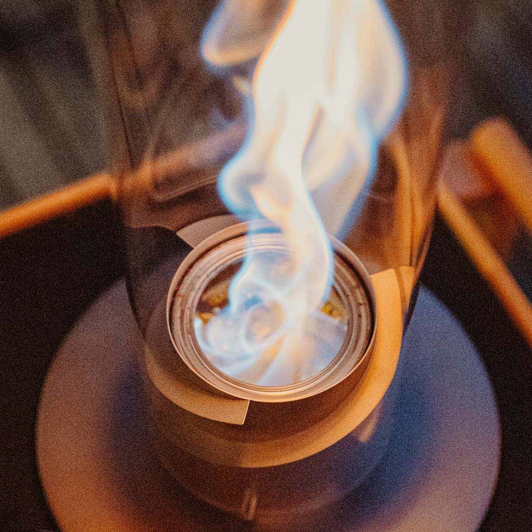 SPIN peut être rempli avec une deuxième recharge et rallumé aussitôt. Il suffit de retirer la cannette encore brulante de SPIN à l’aide des gants höfats. Placer une autre cannette, la remplir de bioéthanol, allumer et profiter de votre SPIN.