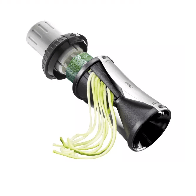 Une idée pratique et gourmand pour créer de délicieux spaghettis de légumes à volonté ! Le poussoir à encliquetage avec poinçon amovible permet l’utilisation intégrale de tout le légume.