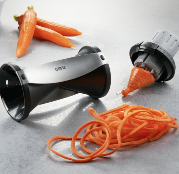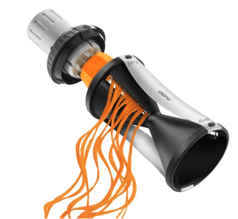 Le taille légumes coupe en un clin d’œil des juliennes sans fin de carottes, radis, concombres et de nombreux autres légumes fermes.