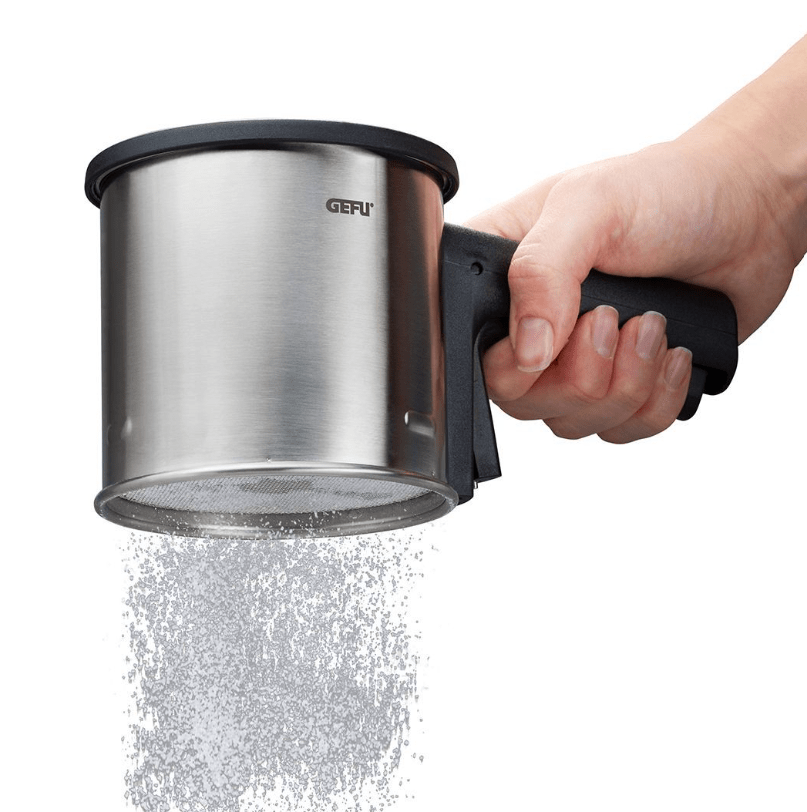 Avec le tamis pratique à une main, la farine, le sucre glace, la poudre de cacao et d’autres ingrédients de cuisson secs peuvent être tamisés particulièrement facilement et uniformément.