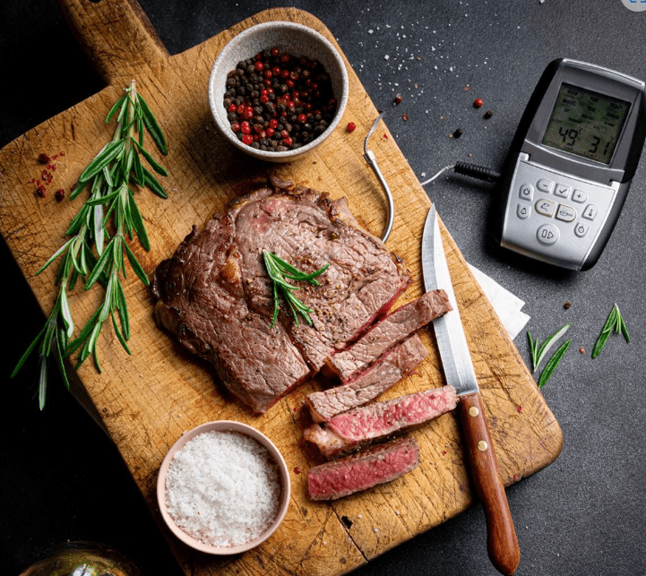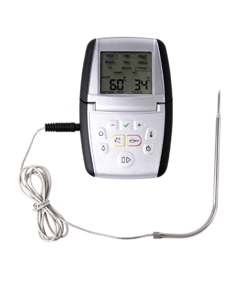 La sonde vous permet de préprogrammer votre type de viande (bœuf, porc, poulet, poisson…) et votre cuisson préférée (saignant, mi-saignant, à point, cuit et bien cuit).
