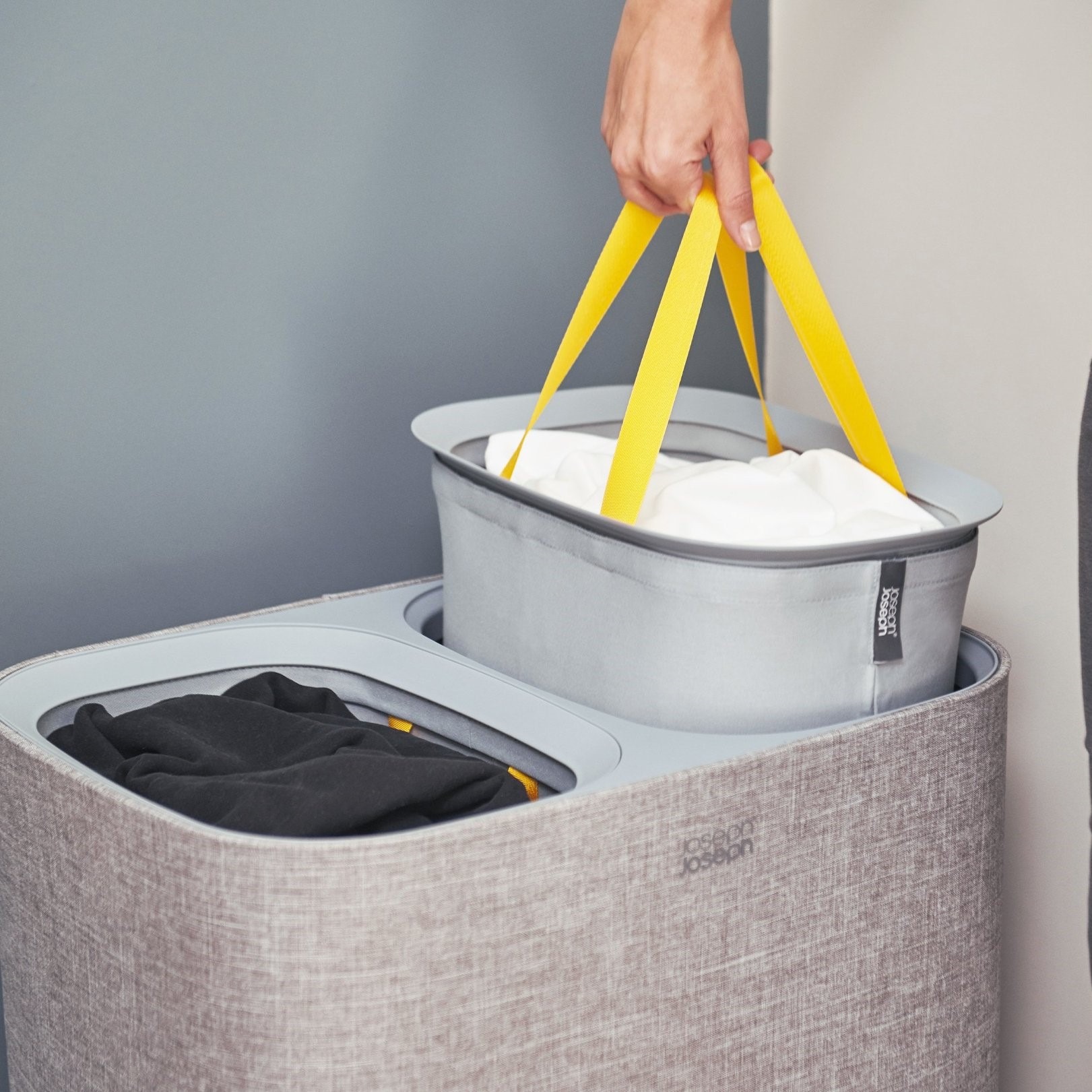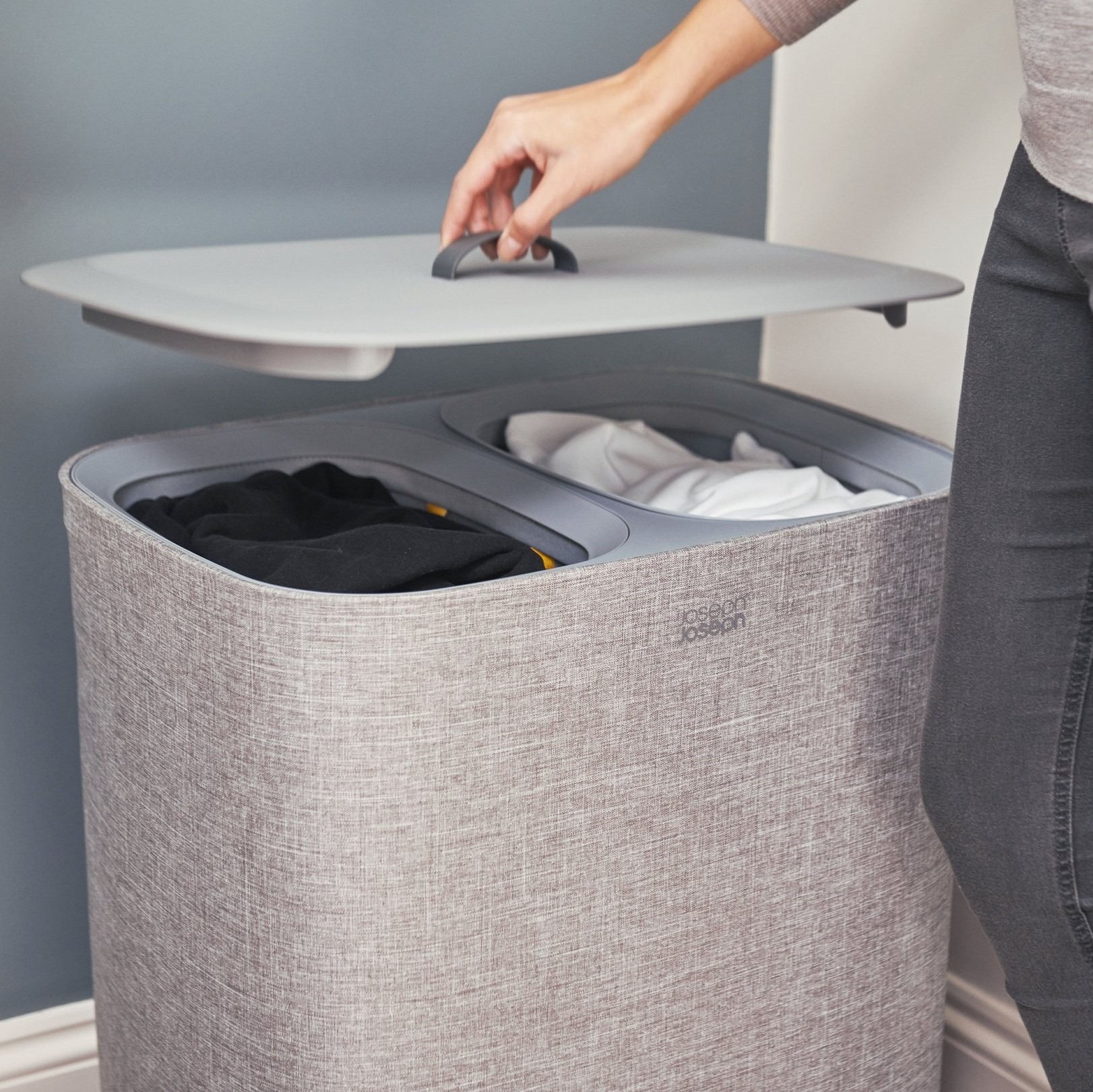 Parfait pour trier votre linge sale, ce panier à linge gris 90 L Joseph Joseph possède 2 compartiments séparés.