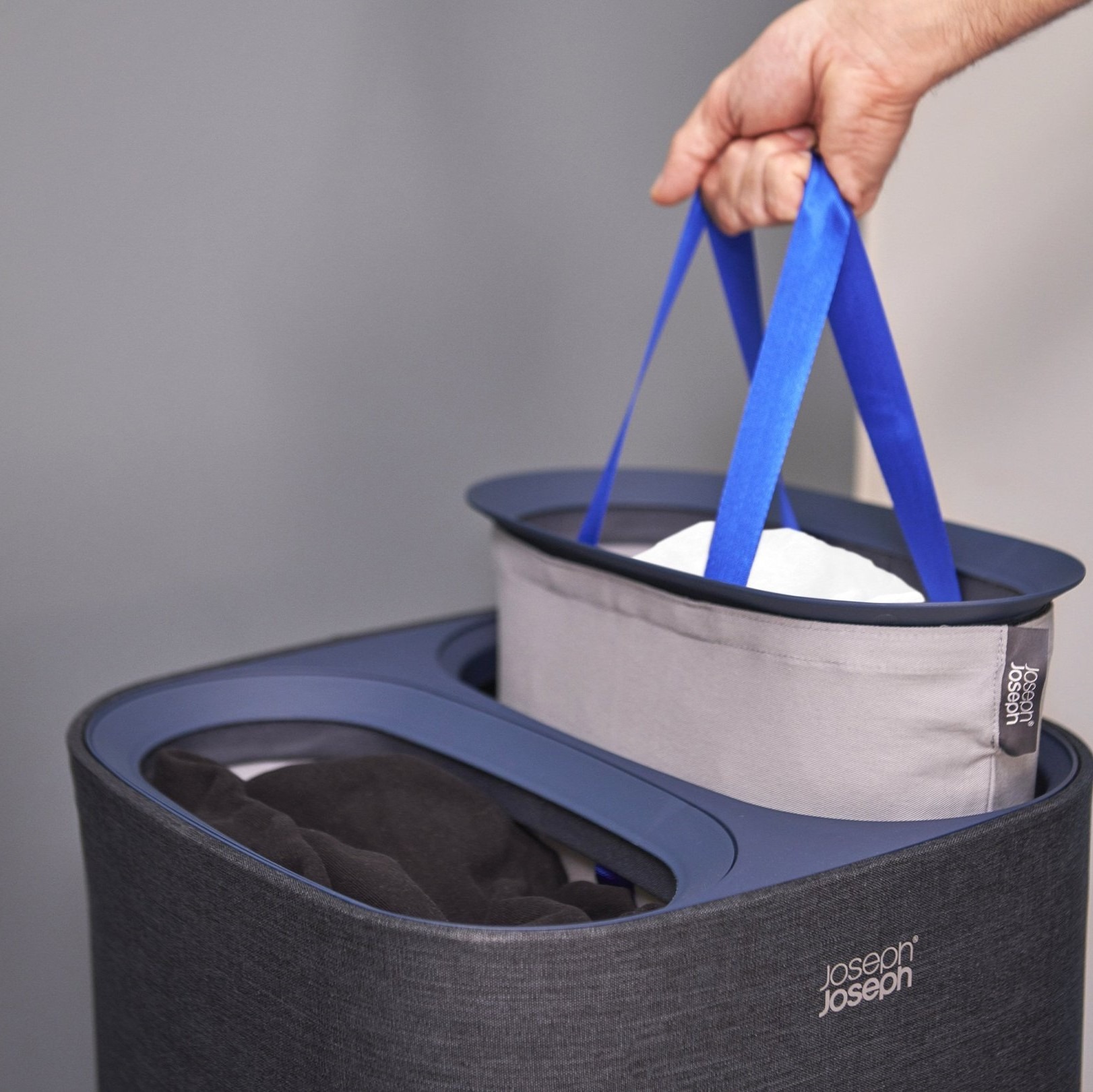 Parfait pour trier votre linge sale, ce panier à linge noir 60 L Joseph Joseph possède 2 compartiments séparés