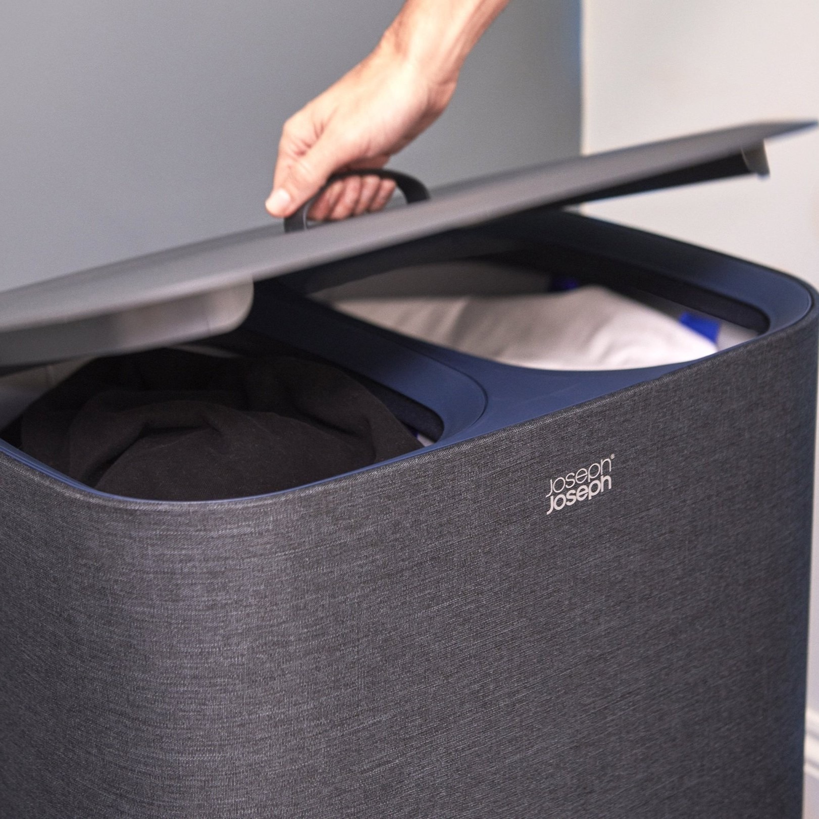 Parfait pour trier votre linge sale, ce panier à linge noir 90 L Joseph Joseph possède 2 compartiments séparés.